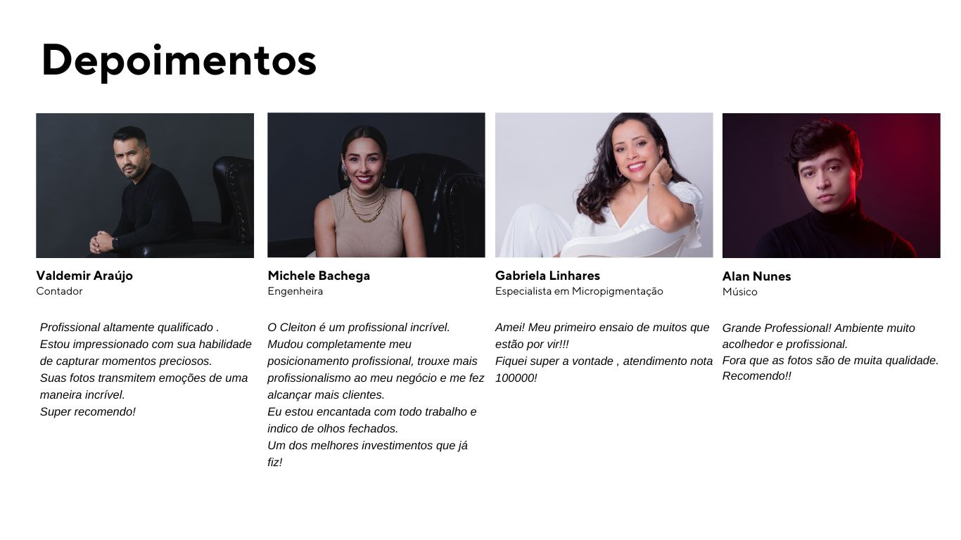 Essa é a pergunta que mais ouço, fique tranquilo (a) sou como um GPS, vou te direcionar o tempo inteiro, cuidar de todos os detalhes, a partir da experiência na sessão de retratos, cada vez que alguém apontar uma câmera para você saberá o que fazer.